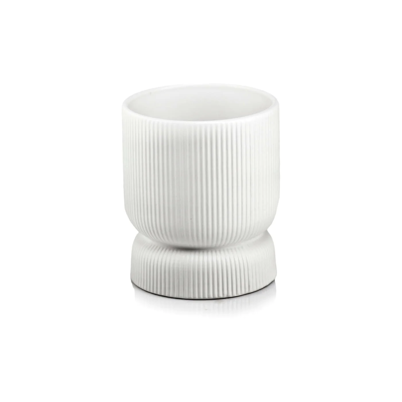 Osłonka doniczka okrągła biała duża 15,8 cm o fakturze karbowanej.