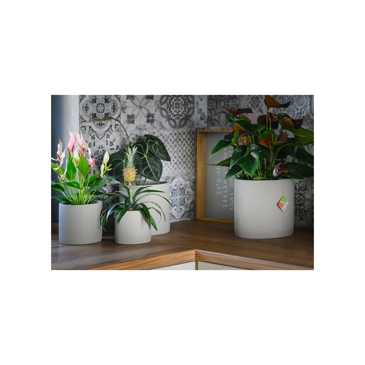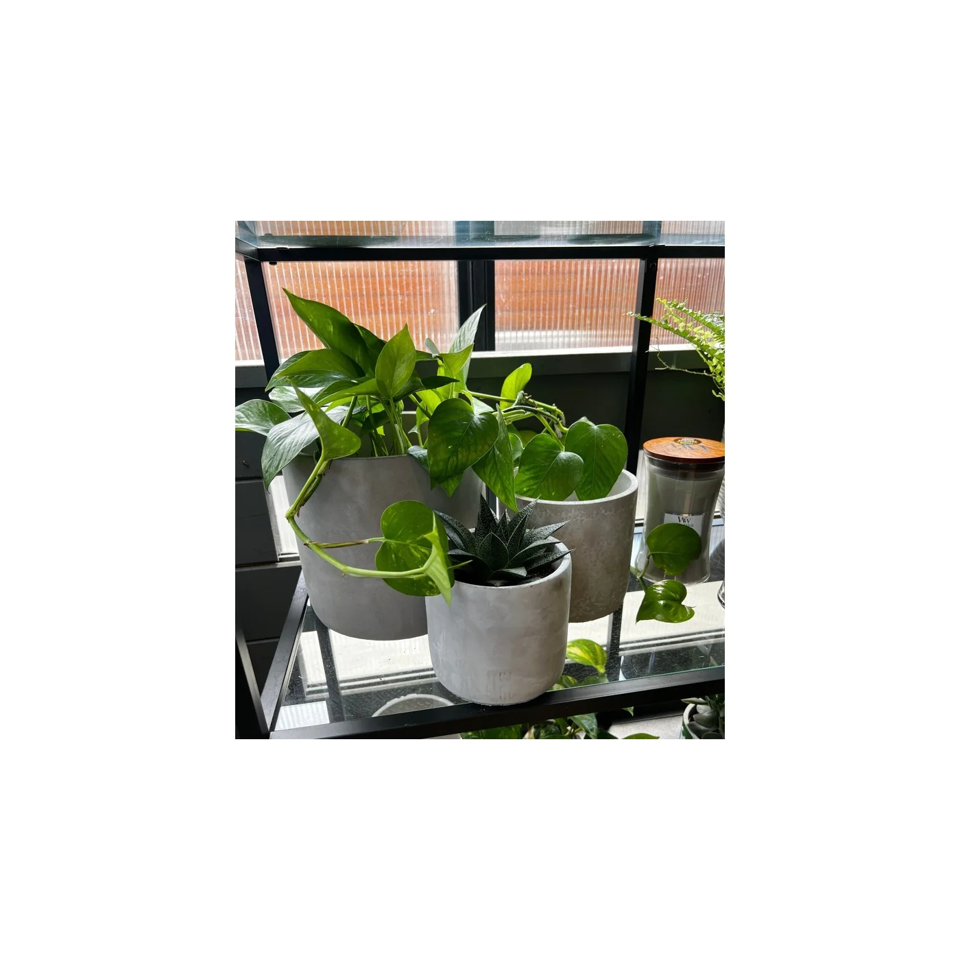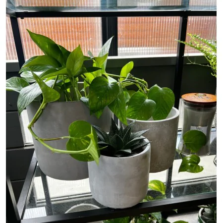 Kolekcja z betonu ozdobnego to donice wykonane z cięższej ceramiki nieszkliwionej, zaprojektowane przede wszystkim pod nowoczesne wnętrza. Osłonka może posiadać lekkie nierówności , przebarwienia tożsame dla surowego betonu.