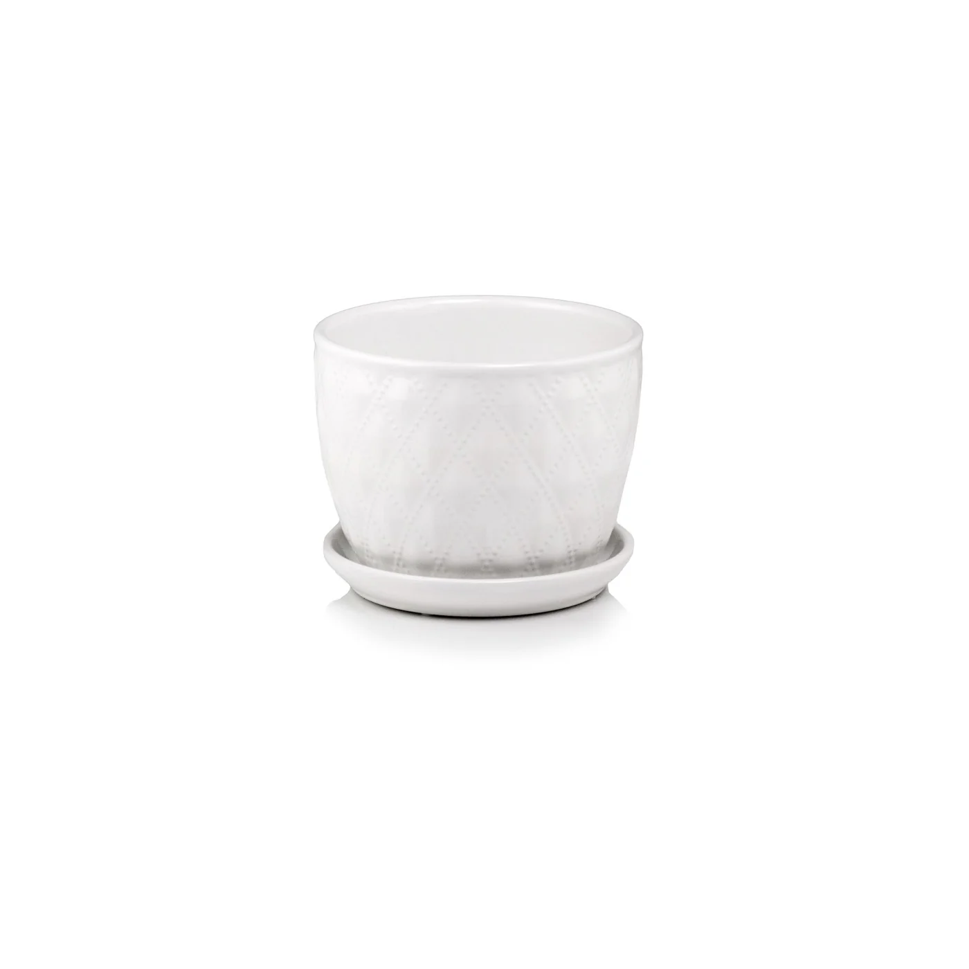 Doniczka biała z podstawkiem 20 cm w kolorze bieli z ozdobnym wzorem.