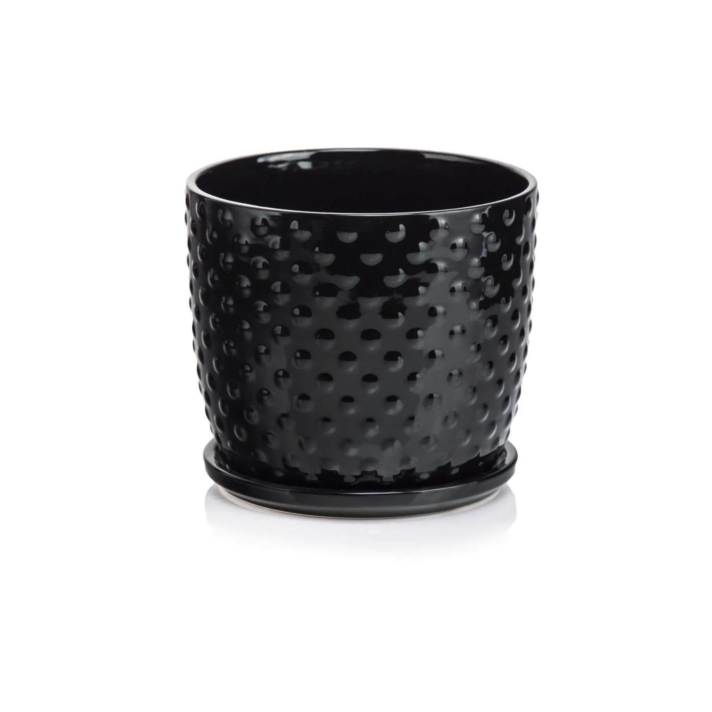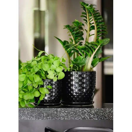 Doniczka czarna z podstawką ceramiczna 15x14 cm