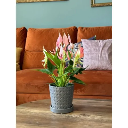 Wpasuje się w kolorystykę szarych i białych dodatków w domu. Również wzbogaci styl dekoracyjny z dodatkami w kolorach szarości. Będzie ciekawym akcentem kontrastowym dla zielonej rośliny.