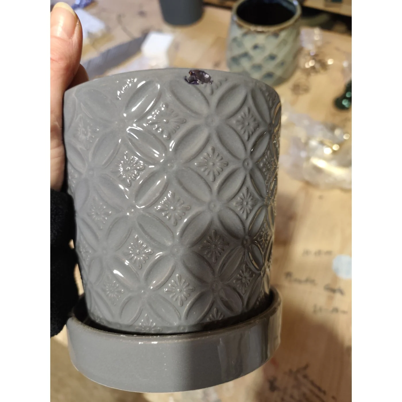 Doniczka szara z podstawką donica 15x15 cm DEFEKTY