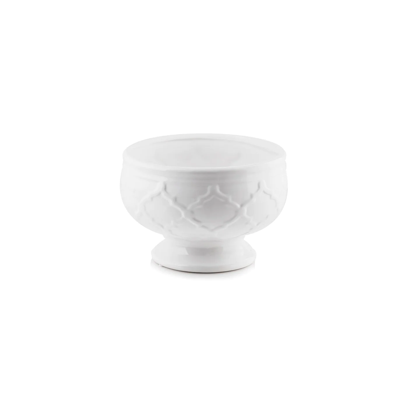 Przepiękna elegancka biała misa na nodze - osłonka ceramiczna w kolorze bieli z ozdobnym wzorem.
