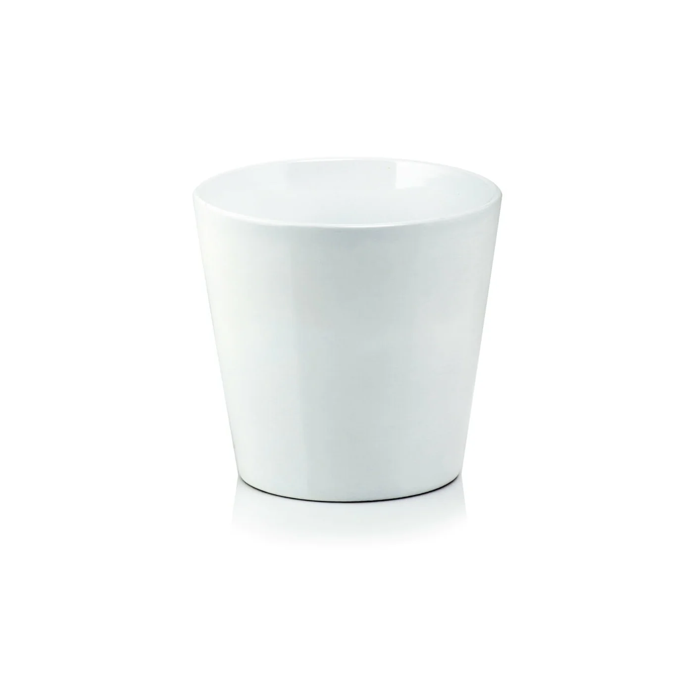 Osłonka w kształcie zwężanym ku dołowi, wykonana z ceramiki w kolorze białym w pół-połysku.