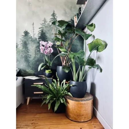 Osłonka czarna MATOWA doniczka ceramiczna w kształcie kulistym .
