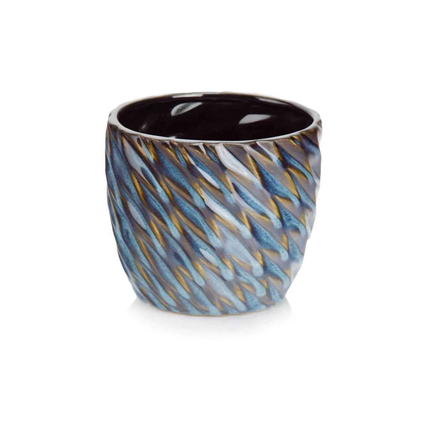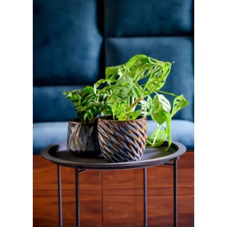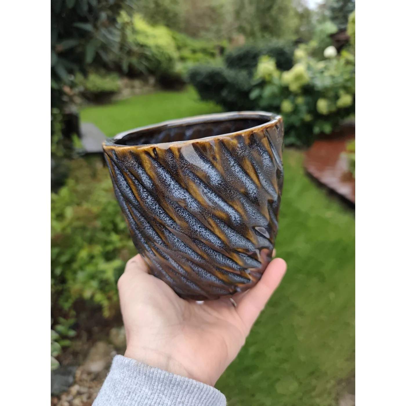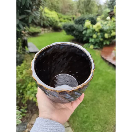 Okrągła donica z ceramiki szkliwionej.