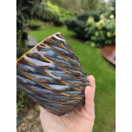 Doniczka z licznymi niedolaniami i pęknięciami szkliwa (crackle), delikatnymi wżerami, nierównościami - ten celowy zabieg nadaje ceramice uroku rękodzieła i wyjątkowości.
