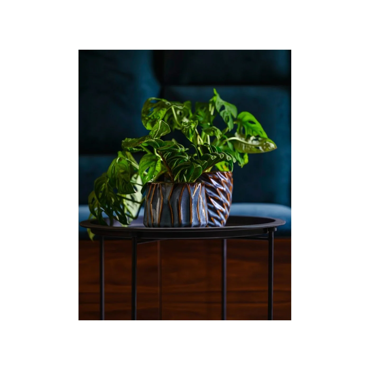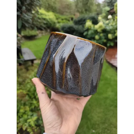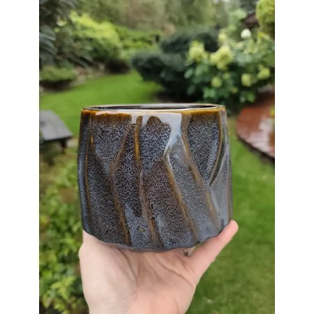 Doniczka z licznymi niedolaniami i pęknięciami szkliwa (crackle), delikatnymi wżerami, nierównościami - ten celowy zabieg nadaje ceramice uroku rękodzieła i wyjątkowości.