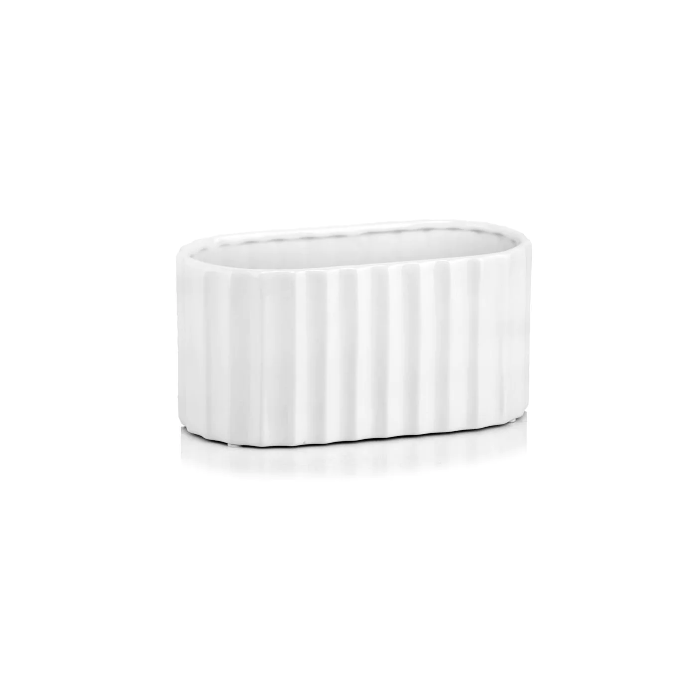 Biała osłonka w kształcie owalnym, ceramiczna rynienka, osłonka karbowana, o długości 25 x 14 cm , wysokości 12,7 cm