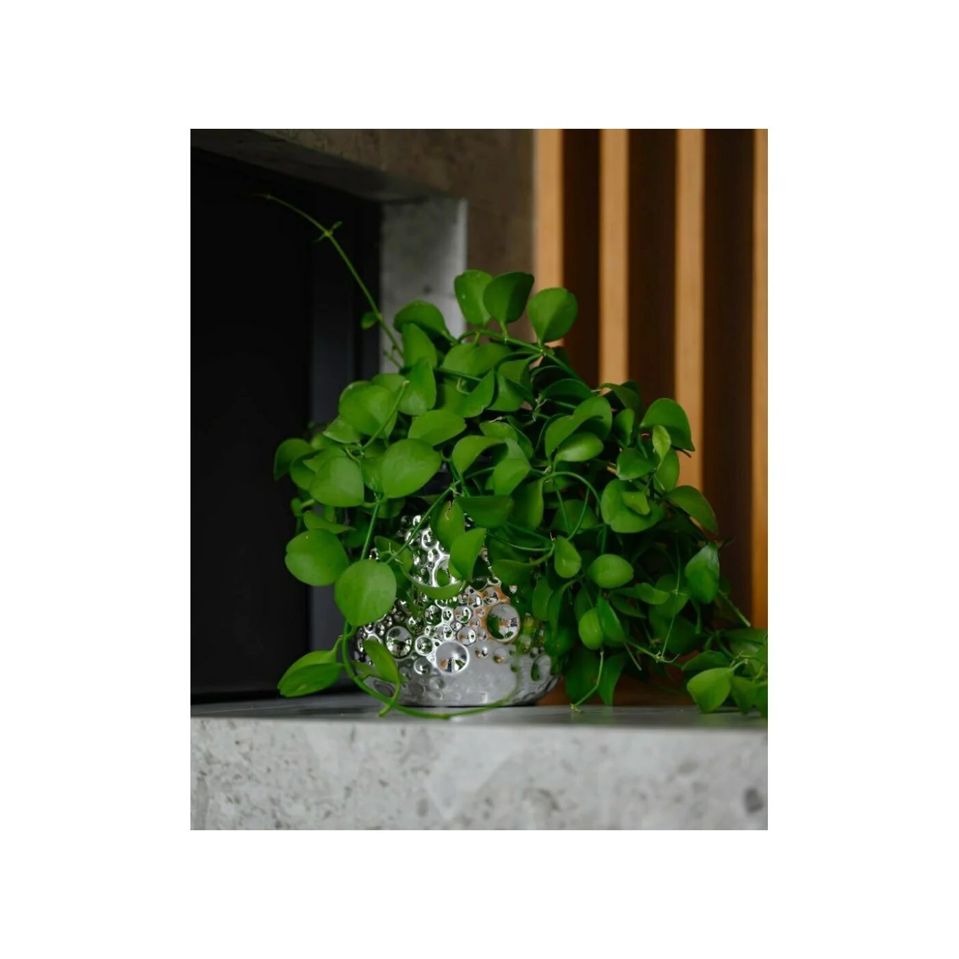 Na całej powierzchni występują nieregularne wgłębienia przypominające bąbelki, które dodają donicy uroku i oryginalności.
