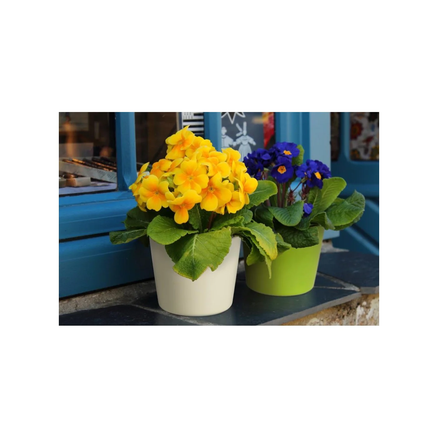 Osłonka ceramiczna jasnoszara pod prymulkę i małe wiosenne kwiaty cebulowe i nie tylko.