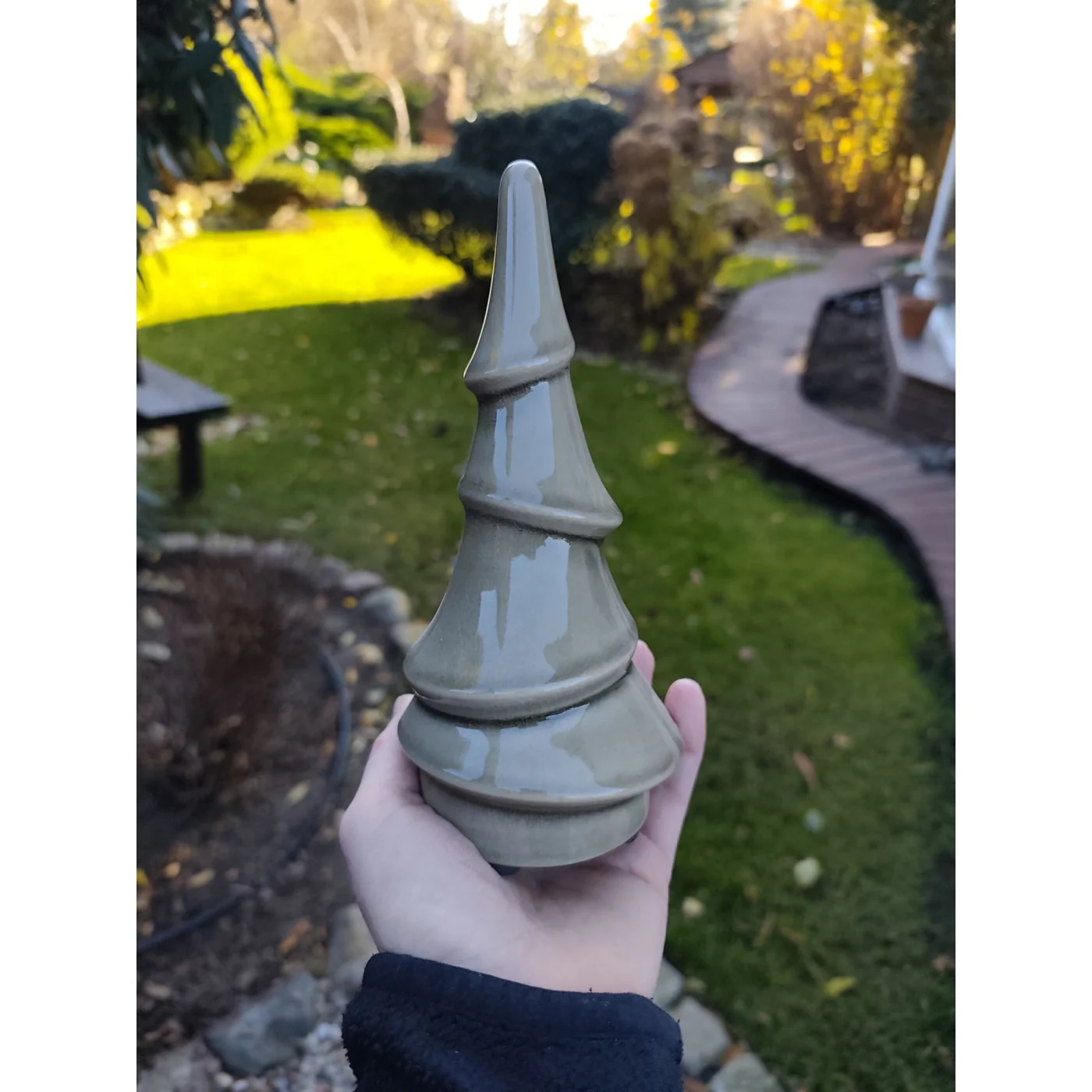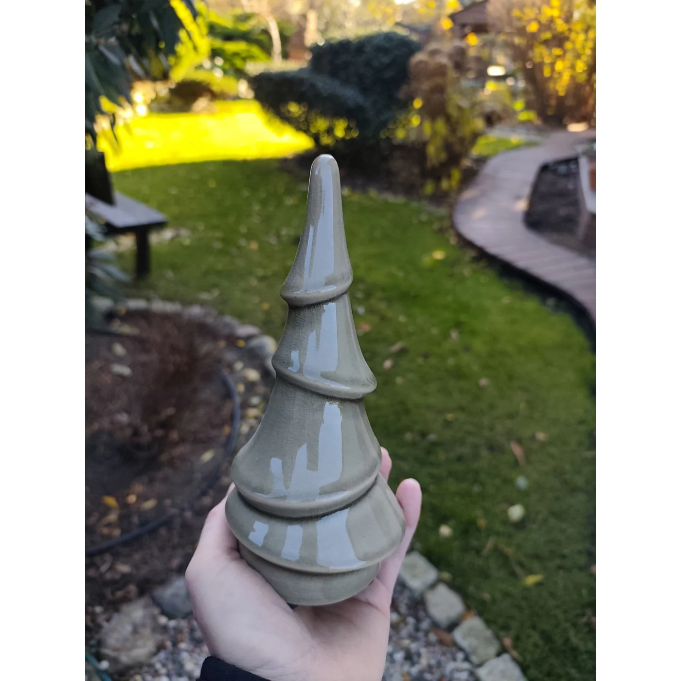 Ceramiczne drzewko choinkowe o nowoczesnej, oszczędnej formie.
