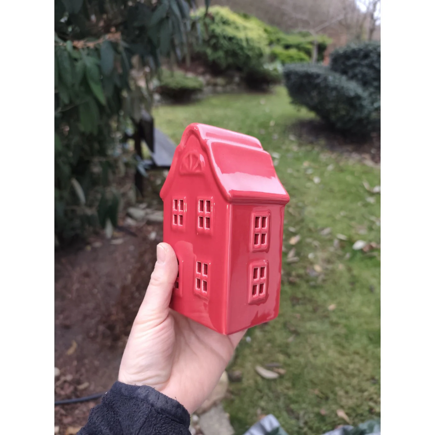 Domek LED ceramiczny czerwony , ceramiczna dekoracja led o wysokości ok 15,5 cm.