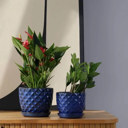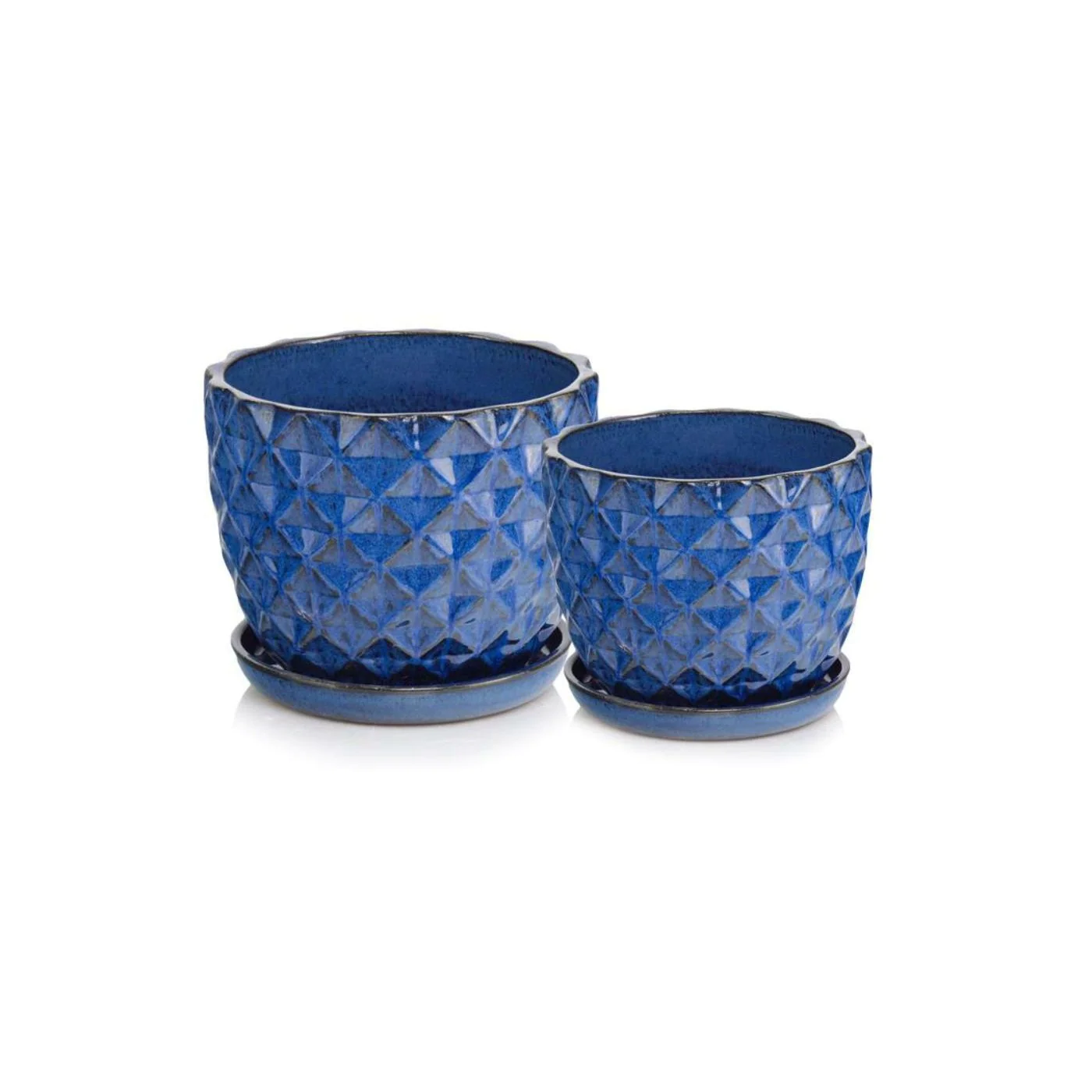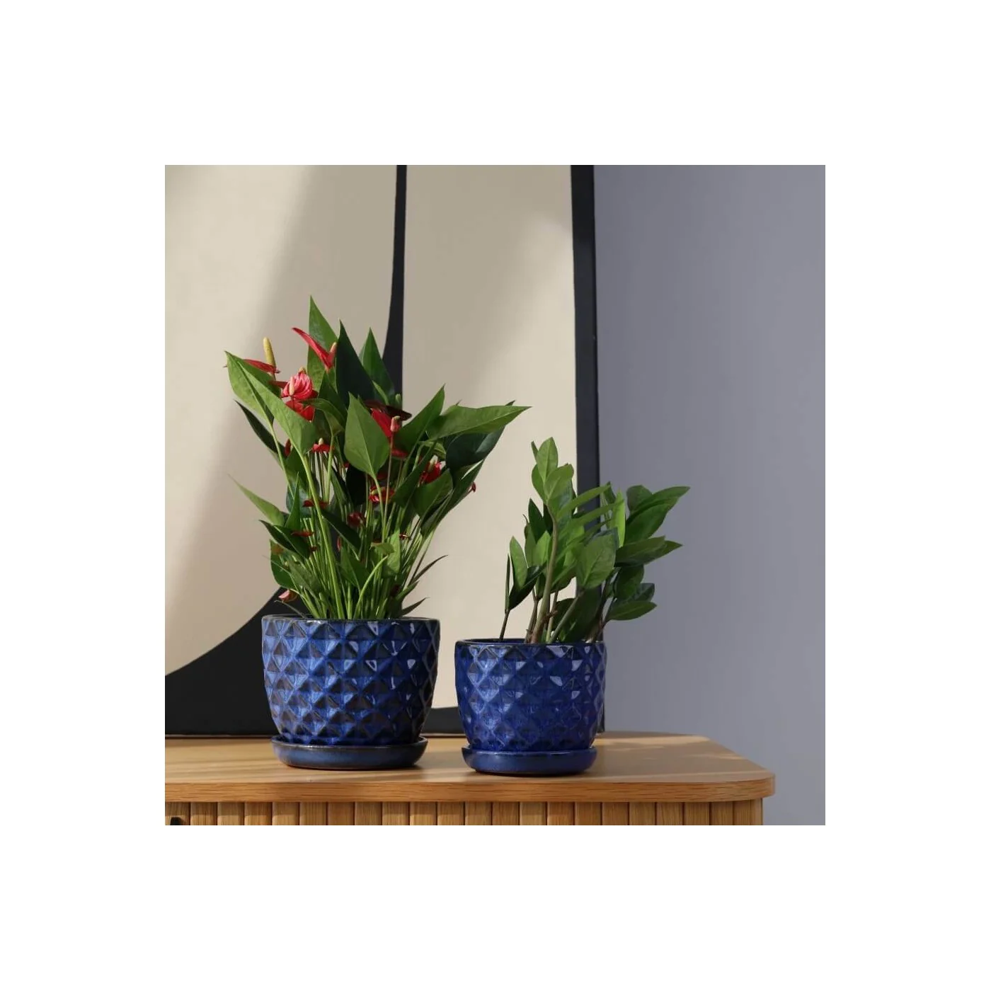 Donica ogrodowa ceramiczna kobaltowa z podstawkiem 14 cm