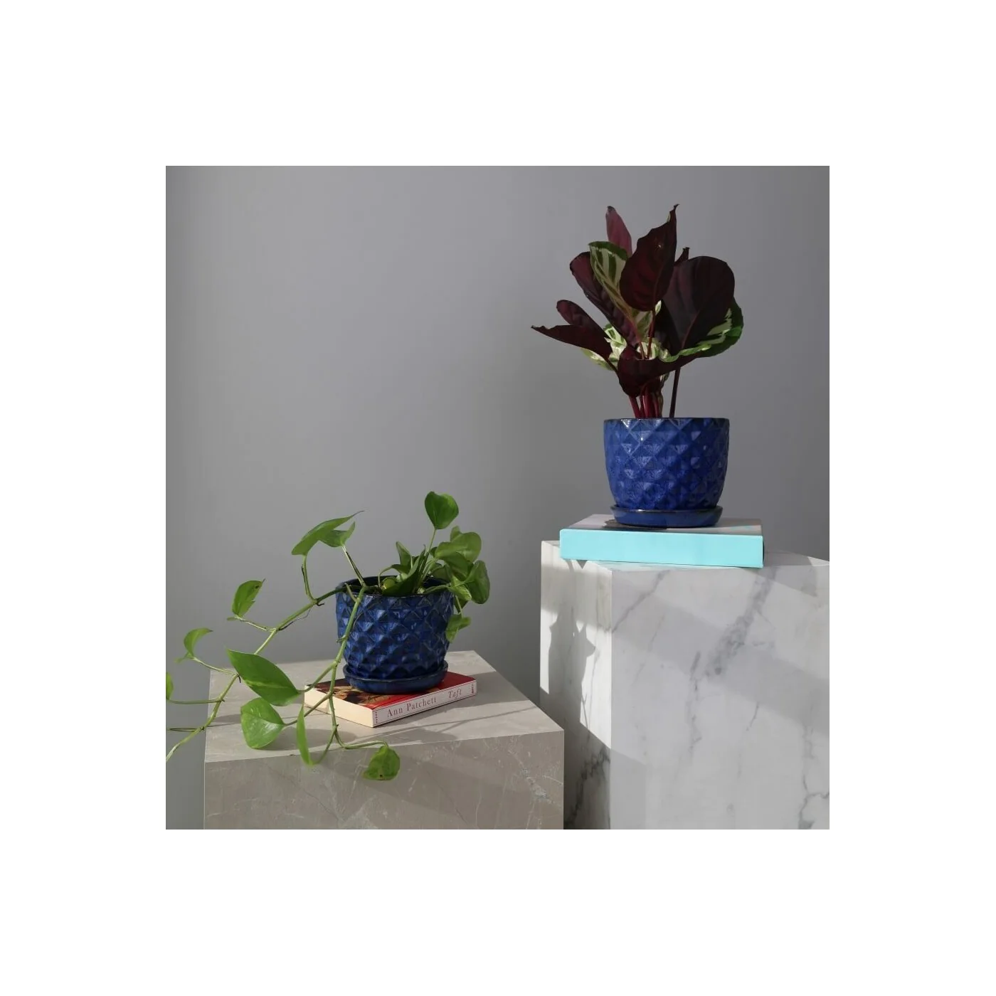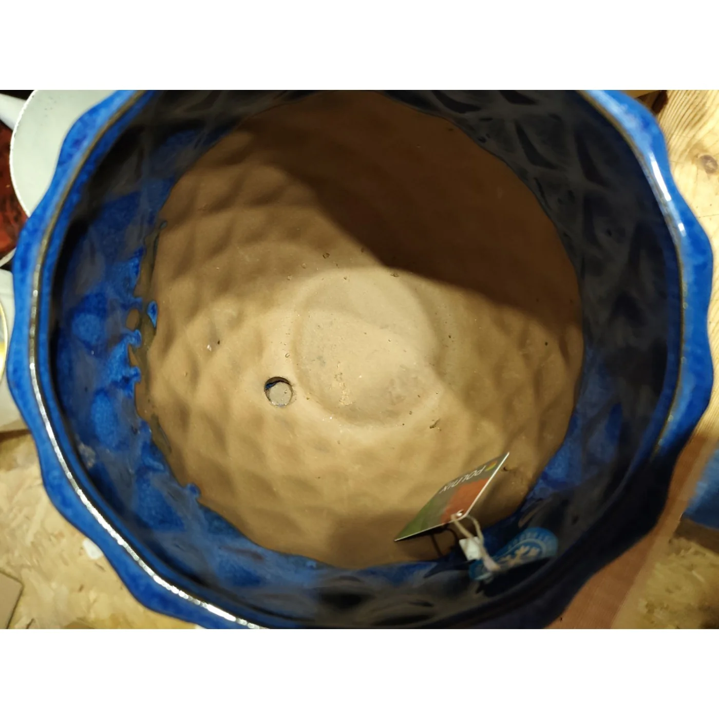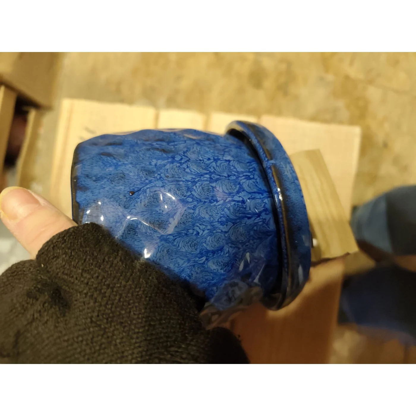 Mała Niebieska kobaltowa ceramiczna donica o okrągłej podstawie w zestawie z KLEJONYM PODSTAWKIEM.