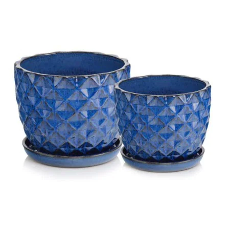 Donica ogrodowa ceramiczna kobaltowa z podstawkiem 20 cm