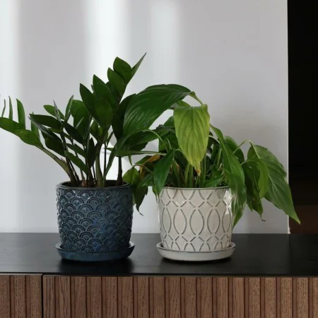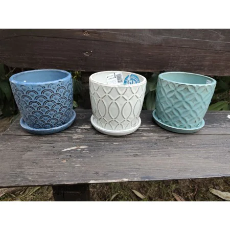 Doniczka niebieska mała ceramiczna z podstawkiem 13 cm