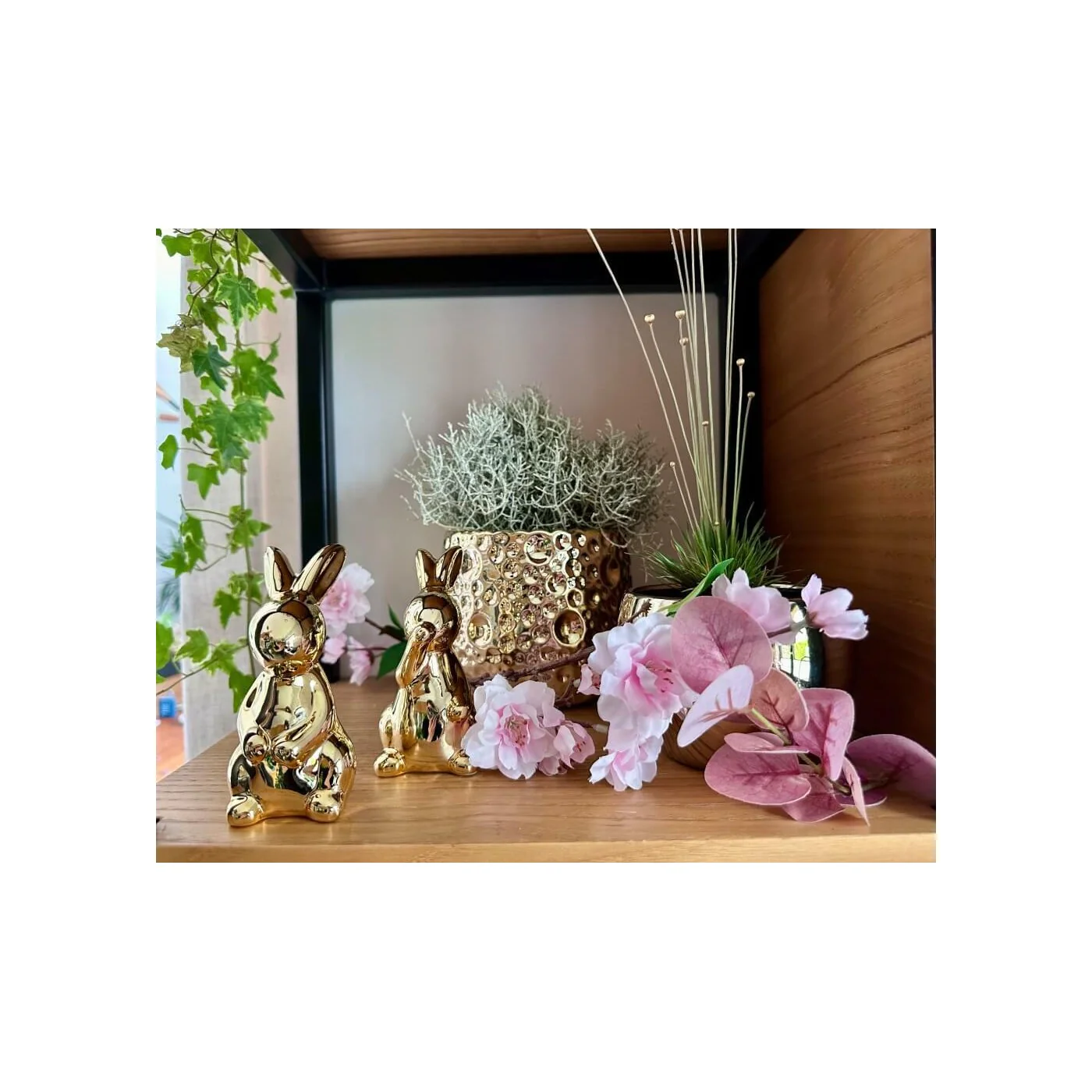 Króliczek wykonany ze złotej ceramiki w połysku.