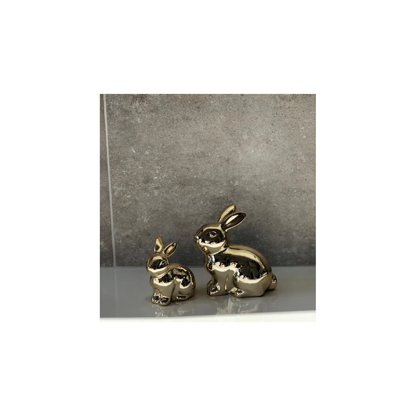 Króliczek wykonany ze złotej ceramiki w połysku.