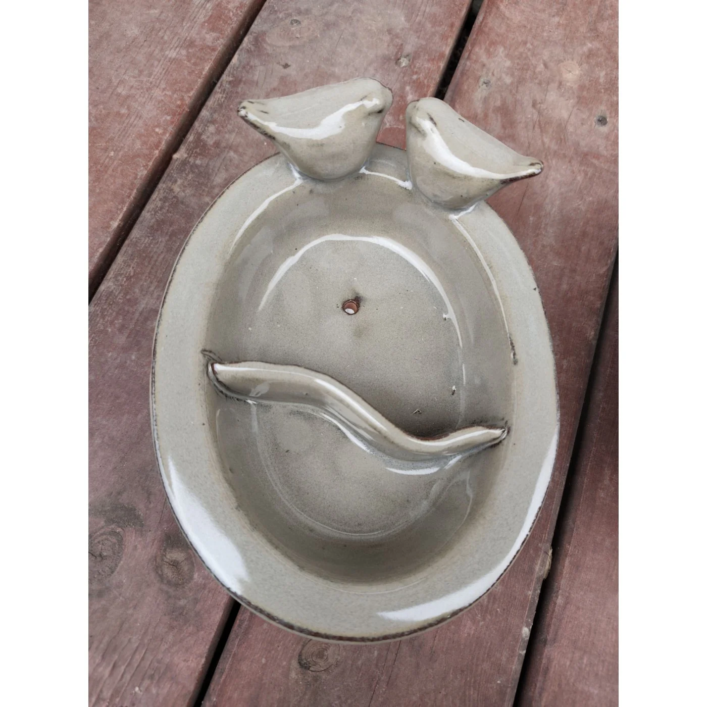 Misa ogrodowa kremowa ceramiczna z ptaszkami 16x22 cm
