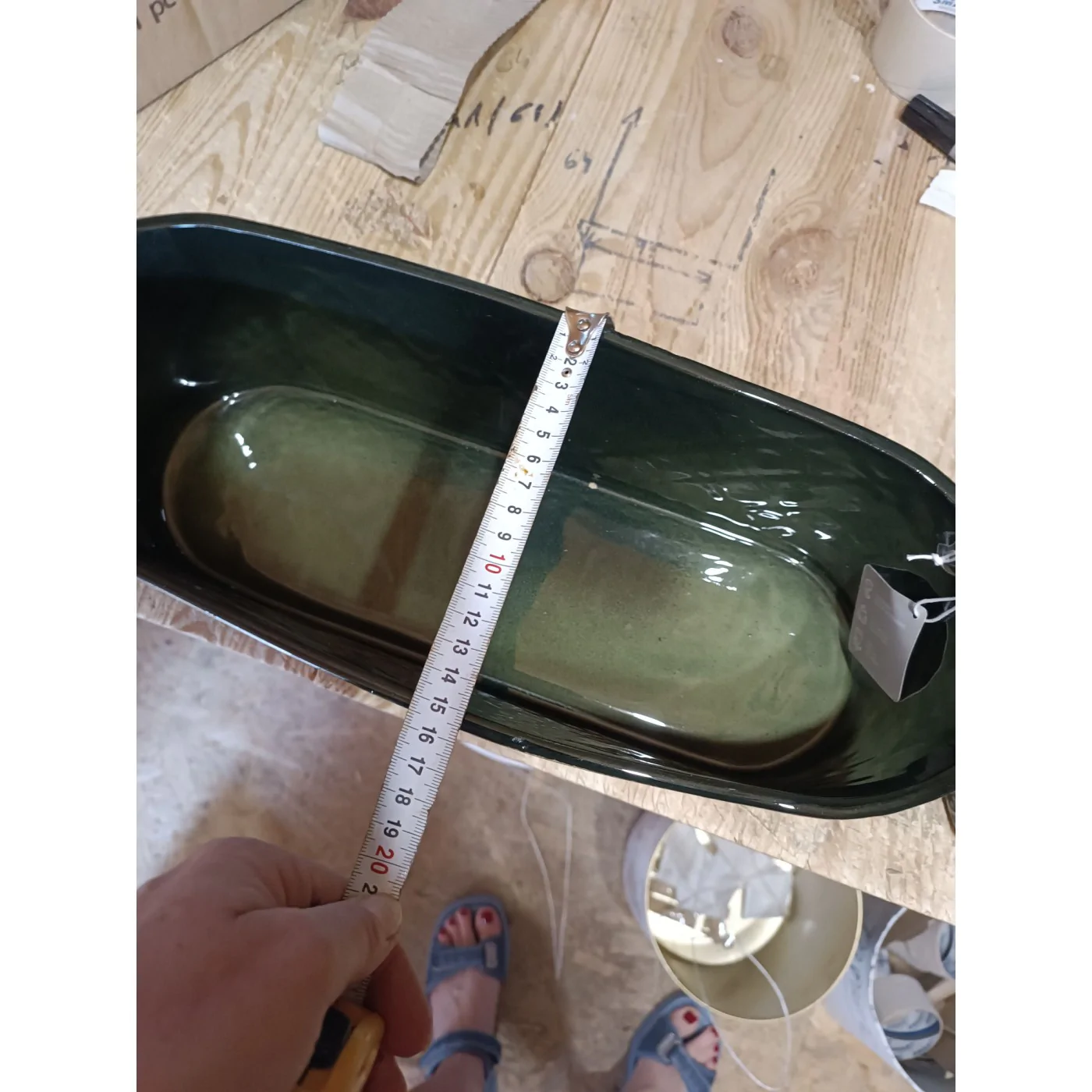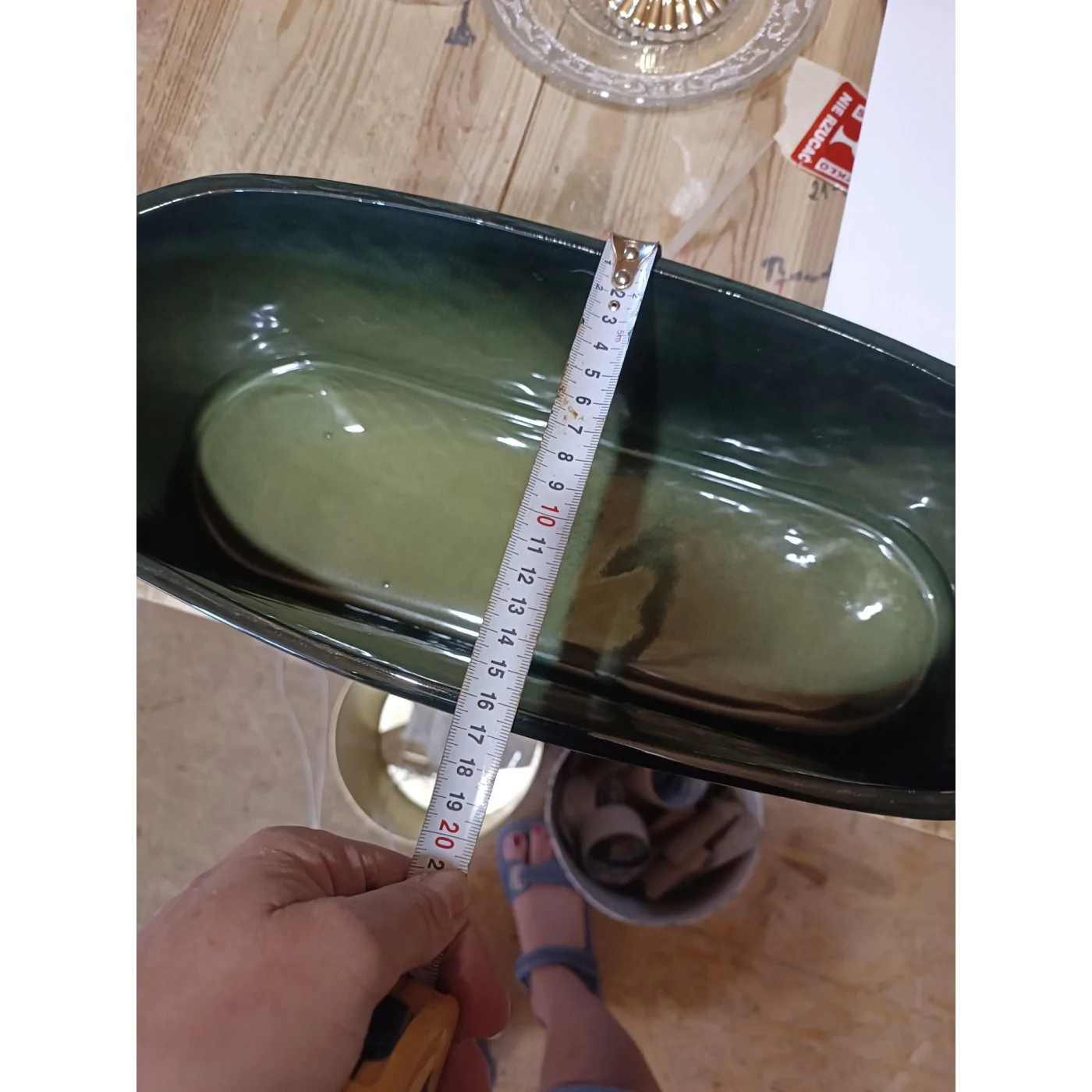Osłonka ciemno zielona podłużna, owalna rynienka ze wzorem długa ok 38 cm .